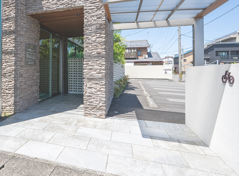 8台分駐められる、ゆとりあるスペースを確保した専用駐車場がありますので、お車の方も安心してお越しください。